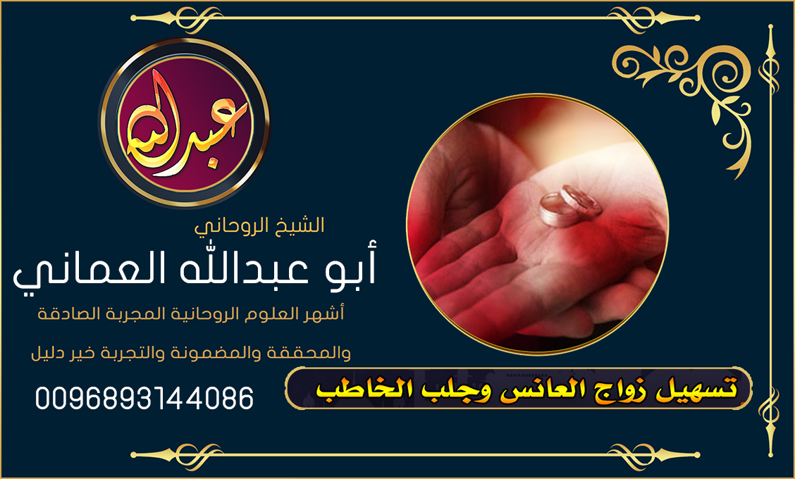 جلب الحبيب - رد الحبيب - ارجاع الحبيب - جلب الزوج الزعلان - رد المطلقة لزوجها - زواج العانس - فك سحر التفريق - فك السحر الاسود - فك السحر الهوائي - علاج القرين والتابعة - علاج للوهم والوسواس - علاج جميع صدمات الجن - علاج وقائي من مخاطر الاصابة بالعين والتحصين . علاج السحر , المعالج الروحاني , جلب الحبيبة , العين , جلب الزوجة , الشيخ الروحاني , محبة وقبول , الشيخة الروحانية , رقم ساحر , جلب الحبيب بالروحانيات , المعالجة الروحانية , جلب الحبيب بالشمع , جلب الحبيب بالعطر , جلب الحبيب بالنظر , جلب الحبيب بالهاتف , جلب الحبيب بسرعة , جلب الحبيب رغماً عنه , جلب الحبيب , الطاعة والقبول , تسهيل الزواج , جلب الخطاب للبنات , جلب الزوج , حرق السحر ورده على صاحبه , خواتم روحانية , رد المطلقة , علاج الحسد والعين , فك السحر السفلي , فك السحر , فك سحر التفريق جلب بالعزيمة البرهتية - جلب هوائي - ربط سفلي - ربط علوي - جلب ارضي - ربط اللسان - جلب الهيبة والطاعة - خواتم واحجار روحانية